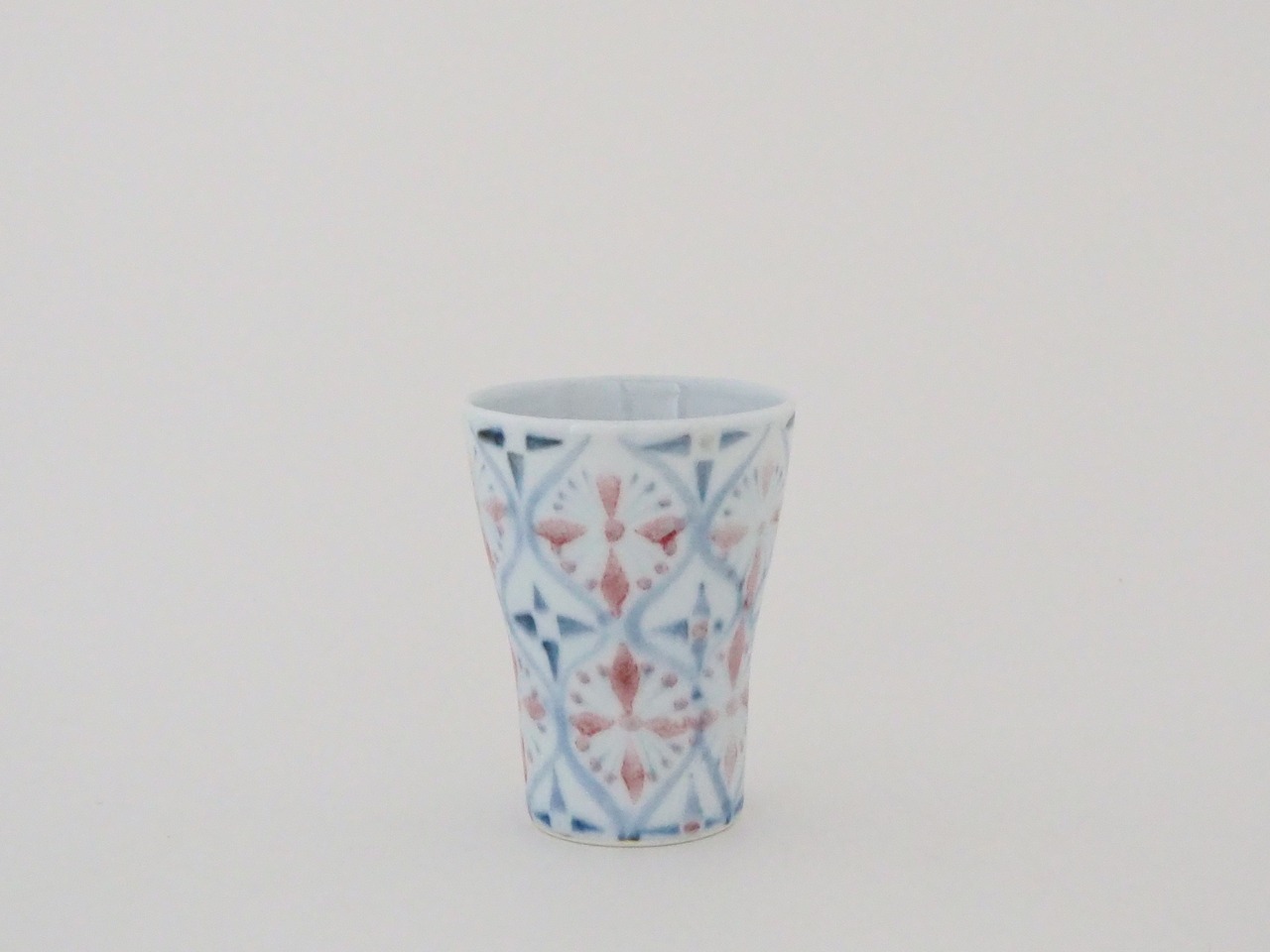 花小紋文フリーカップ 釉裏紅、呉須