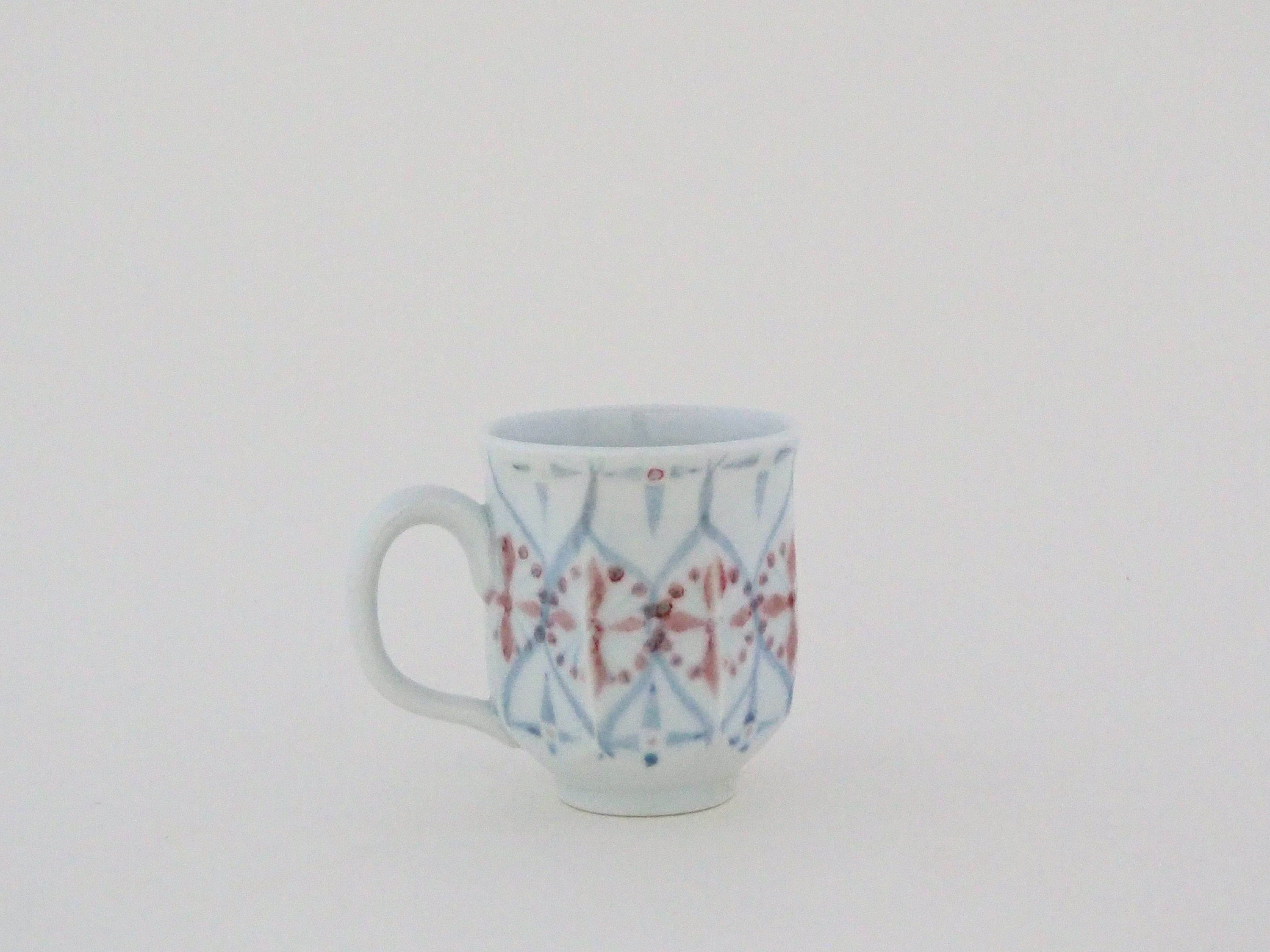 釉裏紅の紅色と呉須の藍色で小紋柄を描いています。