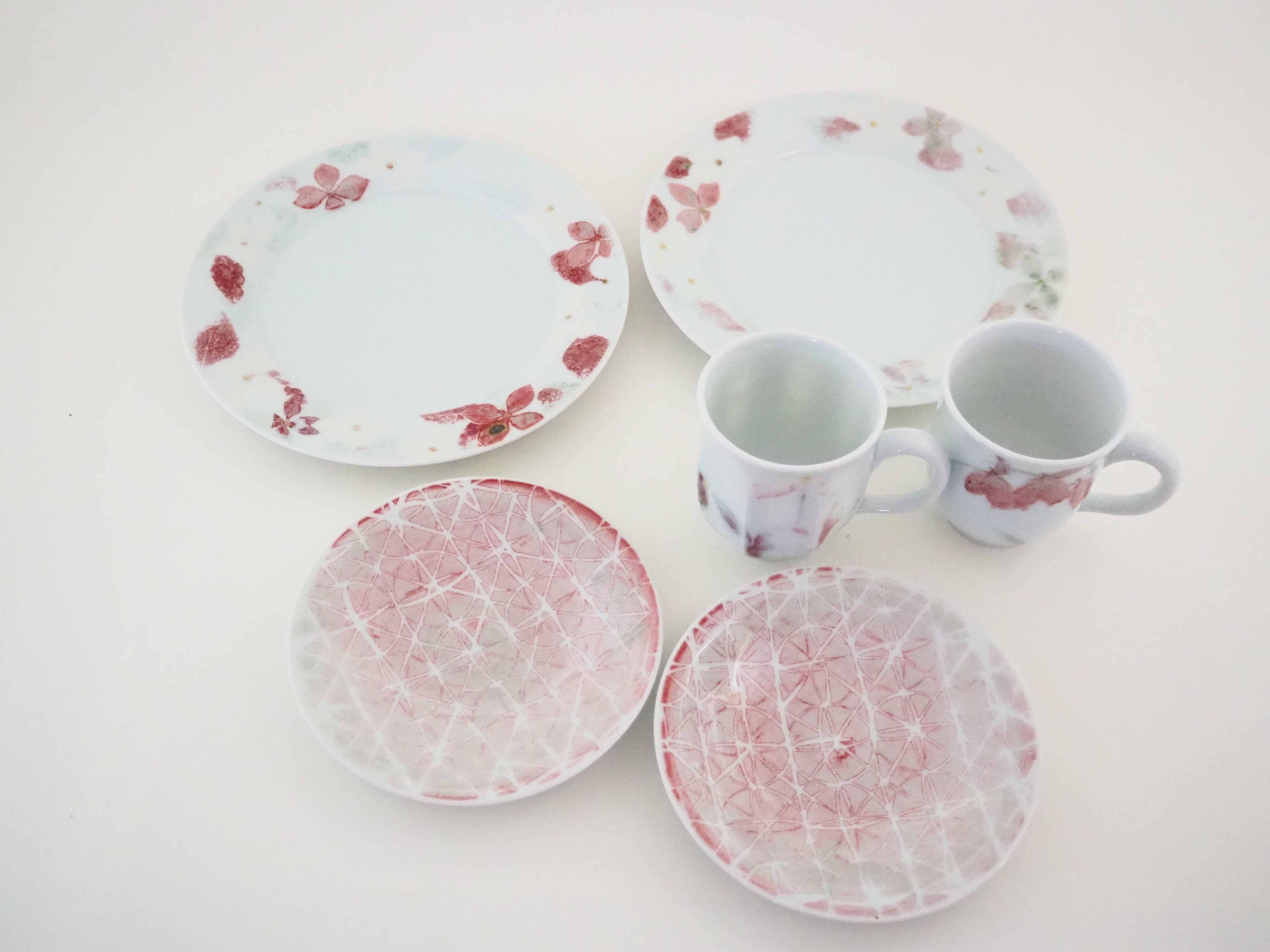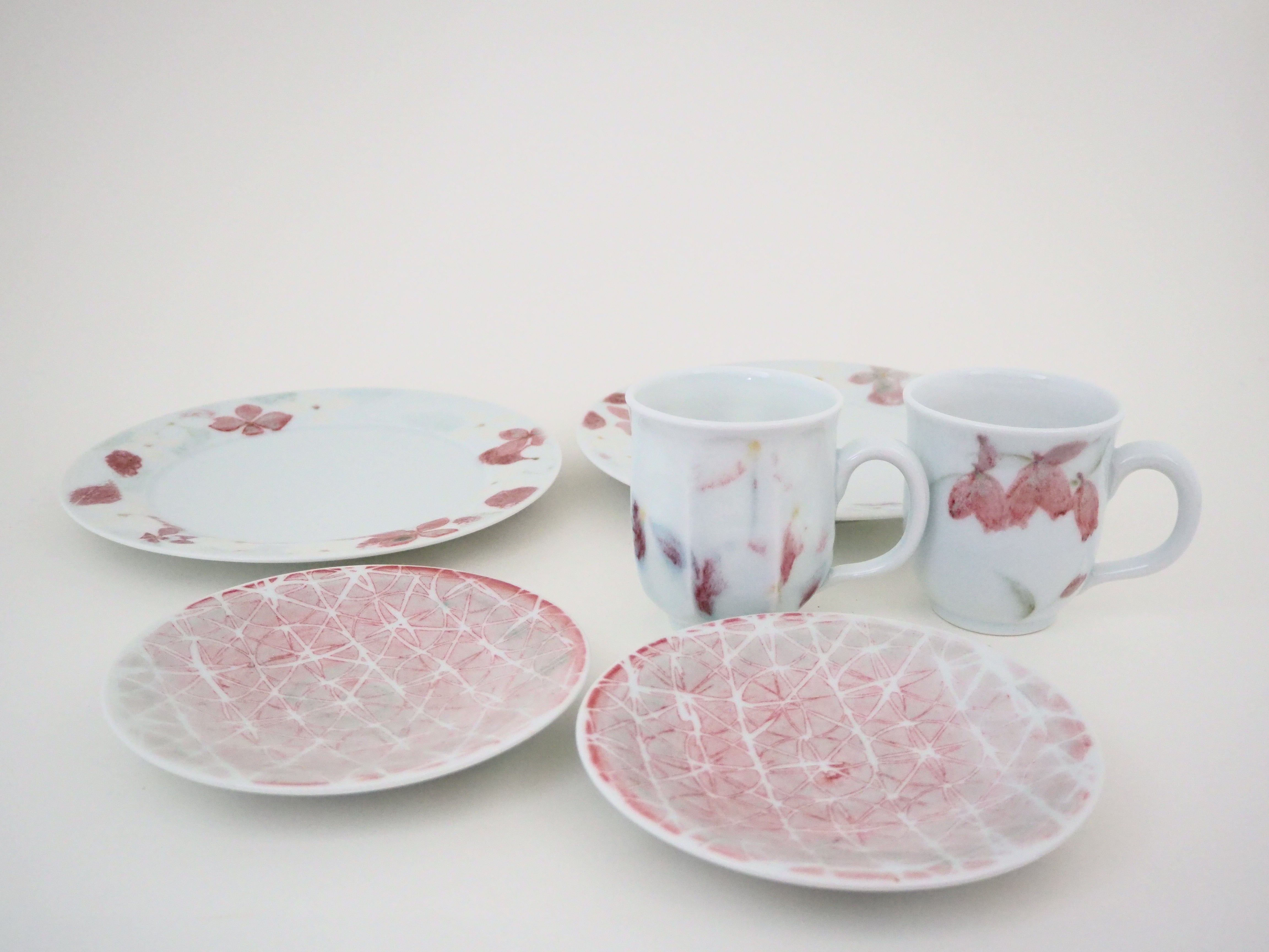 リム平皿(2枚)と 銘々皿(2枚)と マグカップ(2ケ)のセットです。