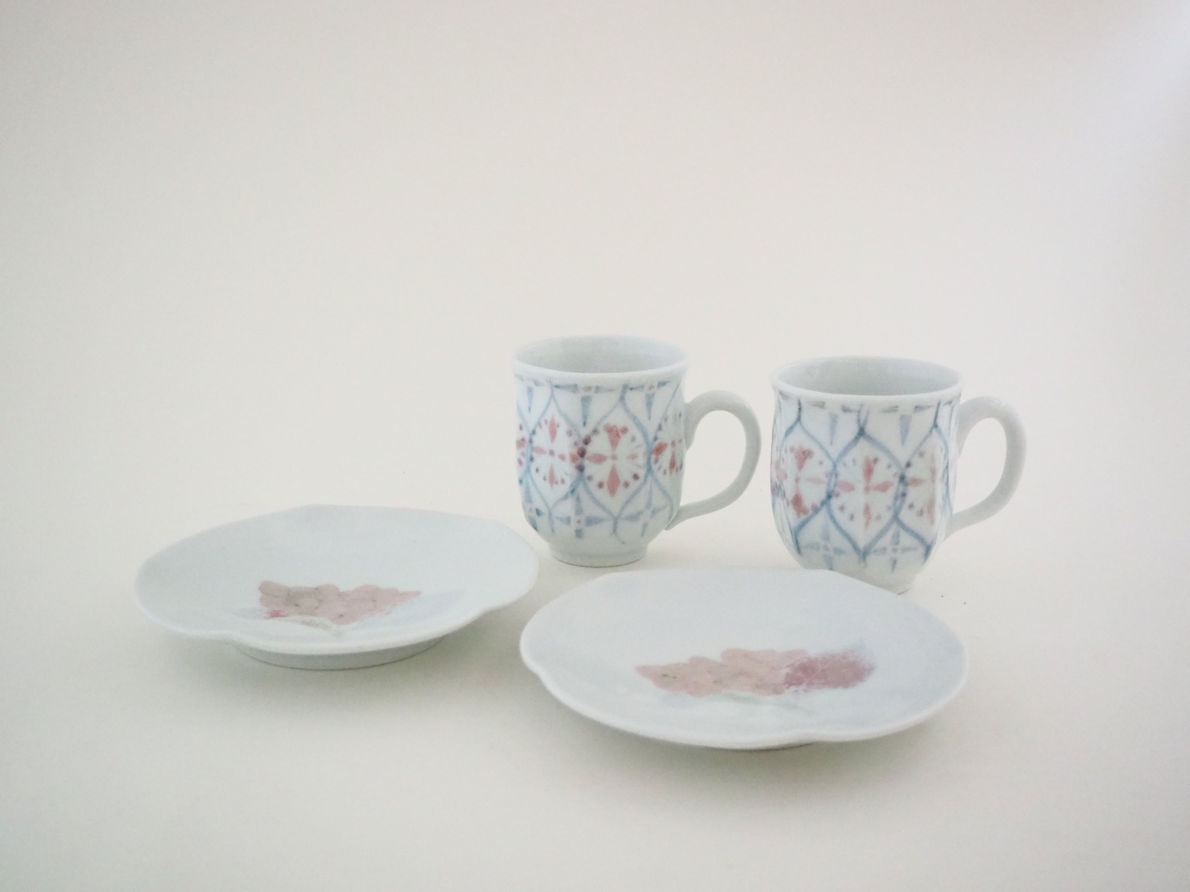 マグカップ(2ケ)と 銘々皿(2ケ) のセットです。
