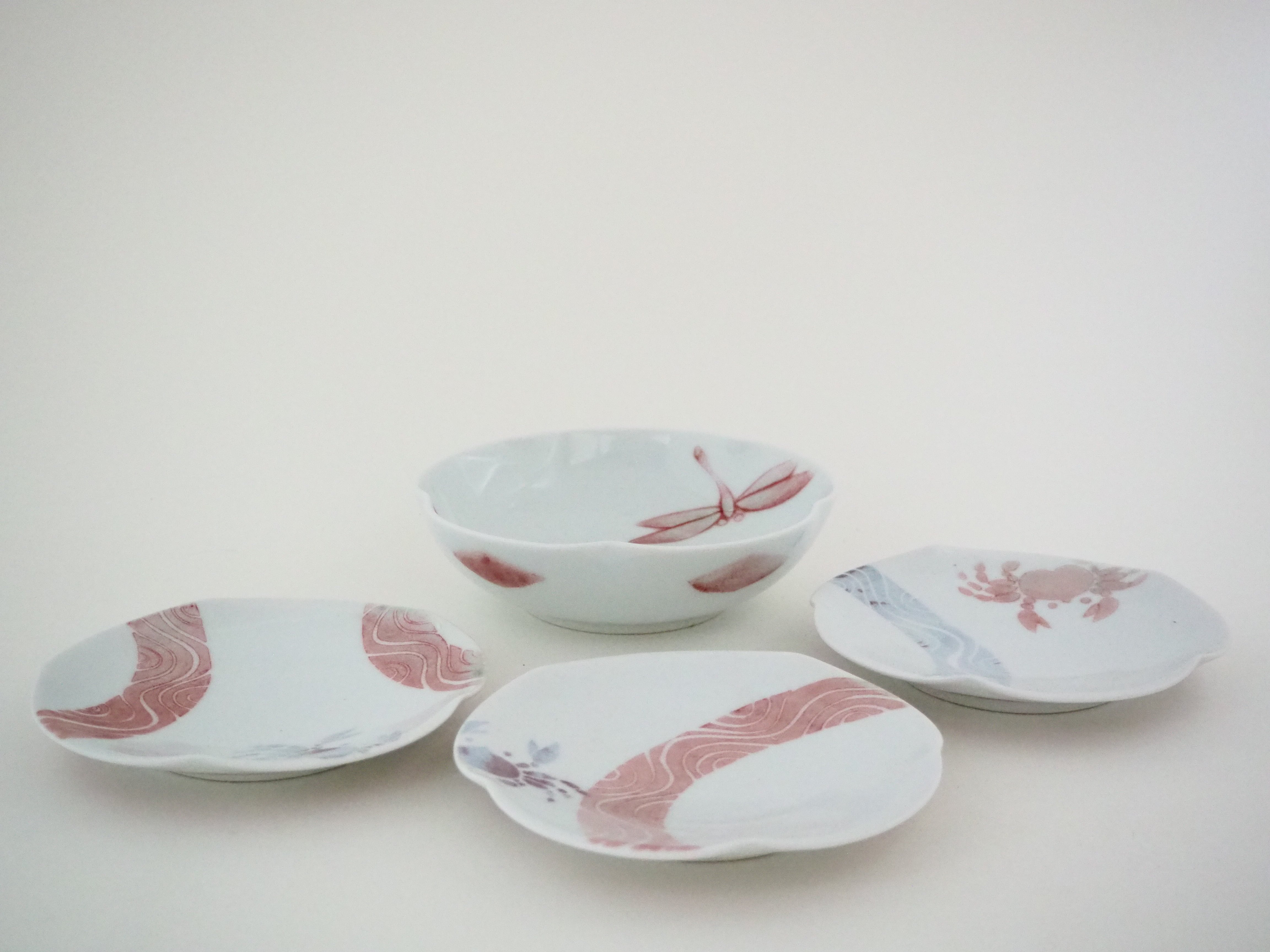 五方押し鉢(1ケ)と 銘々皿(3枚) のセットです。